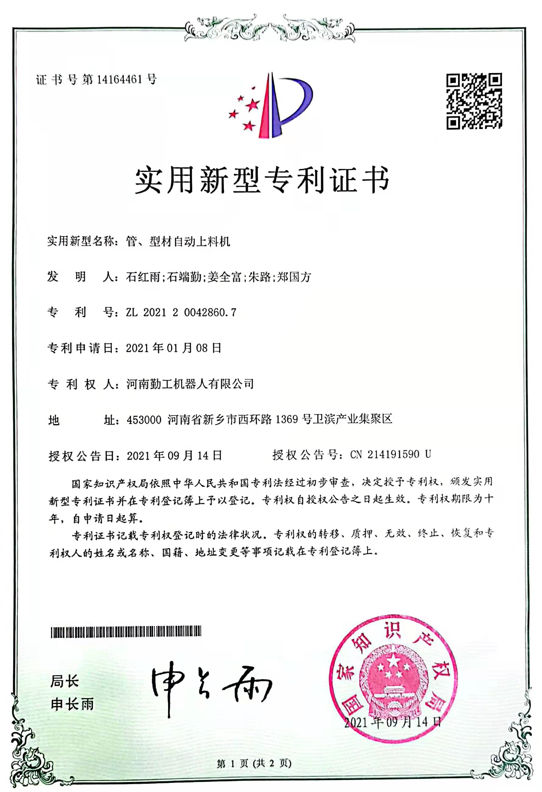 資質(zhì)榮譽(yù) · 勤工機(jī)器人
